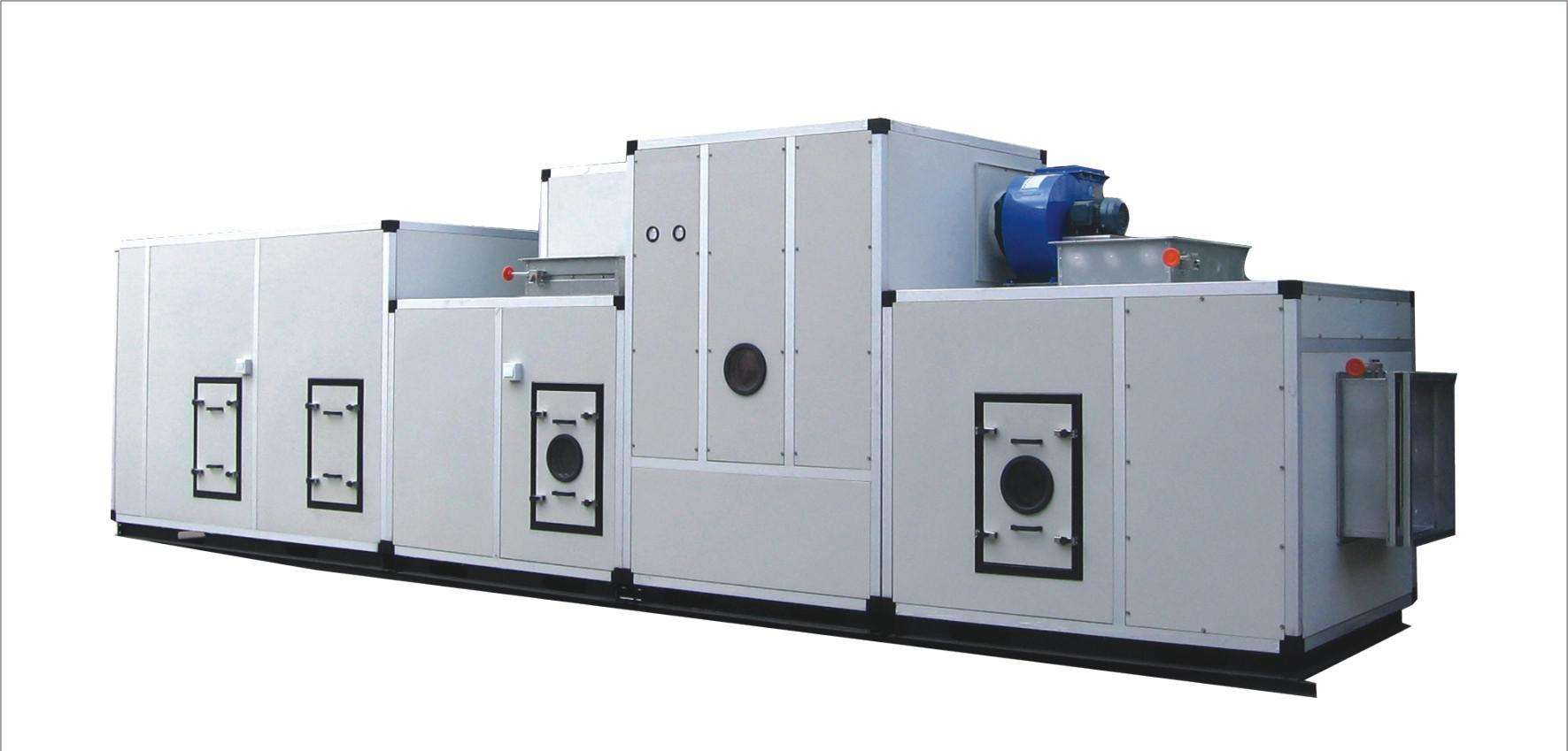 轉(zhuǎn)輪式除濕機(jī)是采用空氣固體吸附的轉(zhuǎn)盤式金屬硅膠吸附體。在除濕過(guò)程中,吸附轉(zhuǎn)盤在驅(qū)動(dòng)裝置帶動(dòng)下緩慢轉(zhuǎn)動(dòng),當(dāng)吸附轉(zhuǎn)盤在處理空氣區(qū)域吸附水分子達(dá)到飽和狀態(tài)后,進(jìn)入再生區(qū)域由高溫空氣進(jìn)行脫附再生,這一過(guò)程不斷周而復(fù)始,干燥空氣連續(xù)的經(jīng)溫度調(diào)節(jié)后送入指定空間,達(dá)到高精度的溫濕度控制。