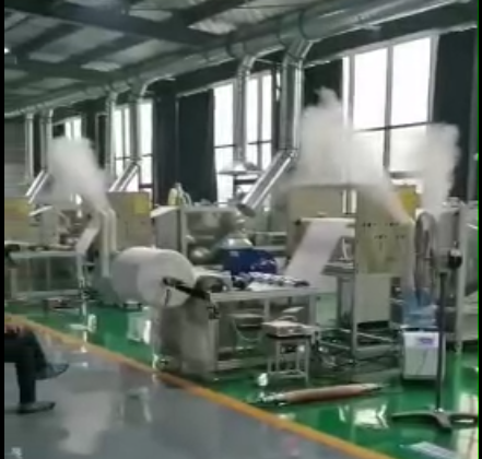 提高過濾程度可以從工藝、原材料等方面入手,那么該如何提高熔噴布的韌性,不讓熔噴布發硬發脆呢?這就需使用正島噴霧加濕機來給熔噴布加濕了,雖然熔噴布的原材料是聚丙烯,沒有吸水性,但是熔噴布是聚丙烯的纖維組成的,這個時候它的吸水性開始提高,只要吸收了一定的水分,那么它的分子鏈間距力就會增加,于是韌性增加,就不會容易斷裂了,它的原理跟錦綸滌綸等化工纖維在紡織的時候需要加濕一樣。當然,給熔噴布加濕需要在熔噴布靜電駐極這道工序前,否則會影響到靜電駐極的效果。